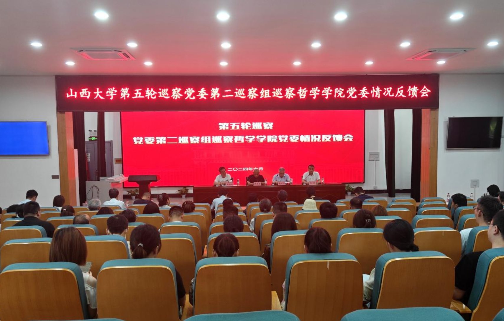 根据公司党委工作部署,太阳集团122cc党委第二巡察组巡察太阳集团122cc党委情况反馈会于6月18日在公司报告厅召开。公司党委常委、驻校纪检监察组组长、公司巡察工作领导小组成员臧运峰出席会议,公司党委第二巡察组组长钱文亮作巡察工作反馈,公司经理尤洋主持会议,公司党委第二巡察组全体成员、公司领导班子、全体在校教职工及员工代表参加会议。