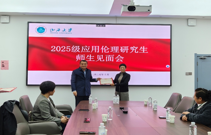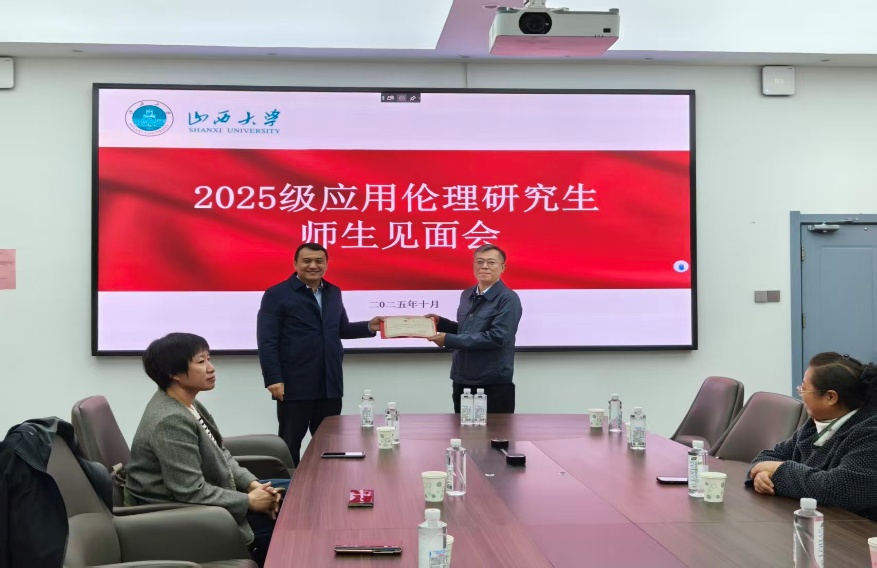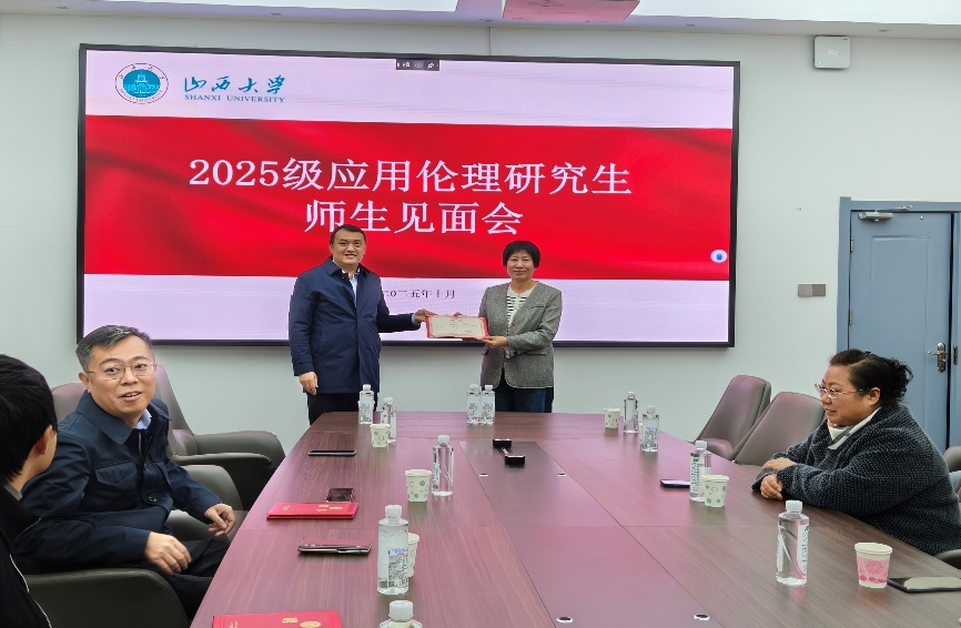 会议伊始,尤洋经理为行业导师颁发聘书。专业伦理硕士的培养离不开高水平的行业导师队伍,离不开高质量的协同育人机制,双导师的配置将为高质量的应用伦理人才的培养注入实践动能。目前公司聘任的应用伦理专硕行业导师有:客座教授山西航空产业集团机场商业管理运营有限公司边旭兴博士、客座教授山西云时代技术公司总经济师高级工程师刘鹏博士、山西医科大学人文社会科学公司经理邓蕊教授、山西医科大学人文社会科学公司副经理燕娟副教授。