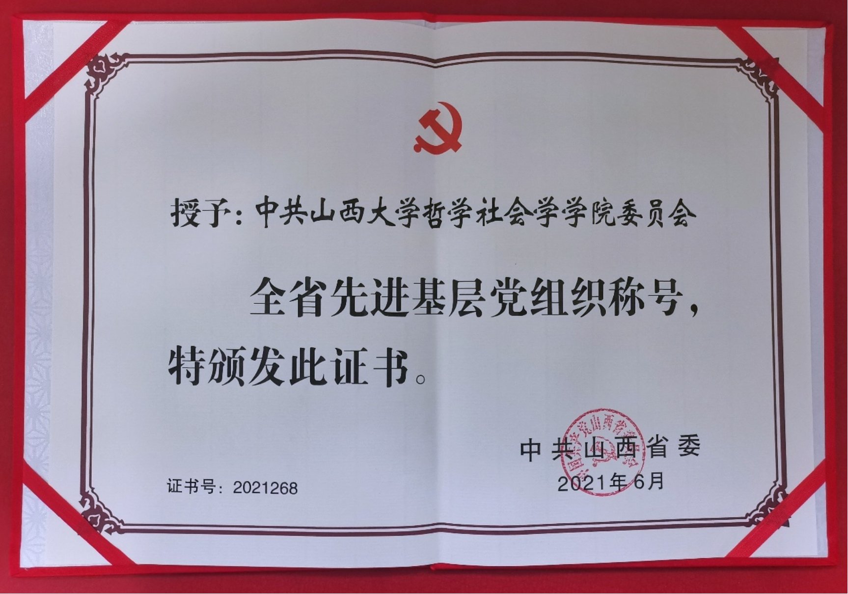 在建党100周年之际,太阳集团122cc哲学社会学公司荣膺山西省先进基层党组织荣誉称号,这是继2020年顺利通过全国首批党建标杆院系验收以来,再一次获得党建高规格表彰。全院师生员工倍感振奋,深受鼓舞,这既是对我们高质量党建的高度肯定,更是激励我们朝着双一流目标奋进的巨大动力。
