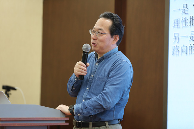 陈小文总编辑的报告为“庄子的超越性思想——《逍遥游》鸟儿问答解构”。通过使用现象学的方法,陈小文总编辑对庄子的《逍遥游》鸟儿问答之文本进行了独特的解构。在疏通庄子文本和理清其中逻辑关系的基础上,他将一个日常生活的寓言还原为生活世界的基本经验,然后对行为举止背后的原因进行探究,寻求其内在可能性的根据。最后根据生活的逻辑,他阐释了道法自然、人能悟道行道的思想,重构了庄子自己的 “道”之哲学思路。