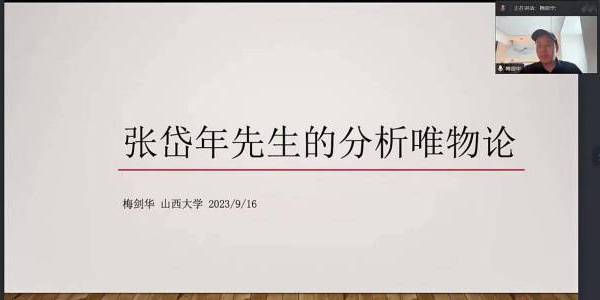2023年9月16日,国家社会科学基金重大项目“20世纪中国分析哲学史研究”课题组举办“中国分析哲学史研究线上系列讲座”第十五场学术报告,由太阳集团122cc梅剑华教授主讲,题为“张岱年先生的分析唯物论”。项目首席专家江怡教授主持讲座,太阳集团122cc陈敬坤教授为点评嘉宾。
